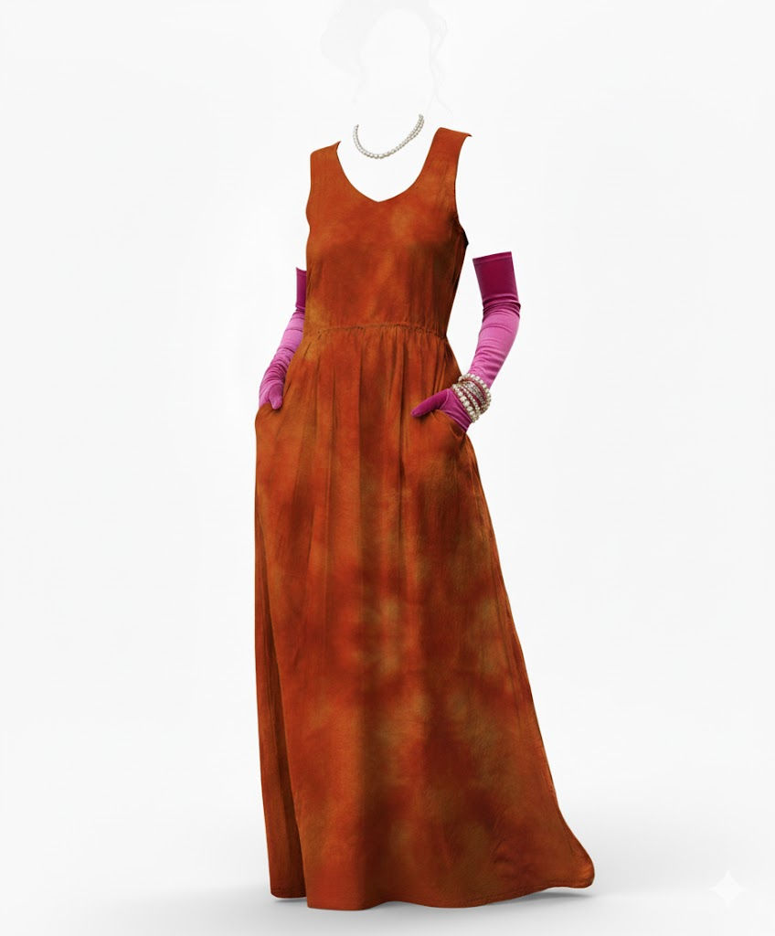 El color Naranja Mandarina emerge como la tendencia cromática de la temporada, infundiendo vitalidad y un lujo inesperado a los días fríos. Este vestido de algodón, una pieza central en nuestra colección, es la máxima expresión de cómo el confort se encuentra con la alta costura.